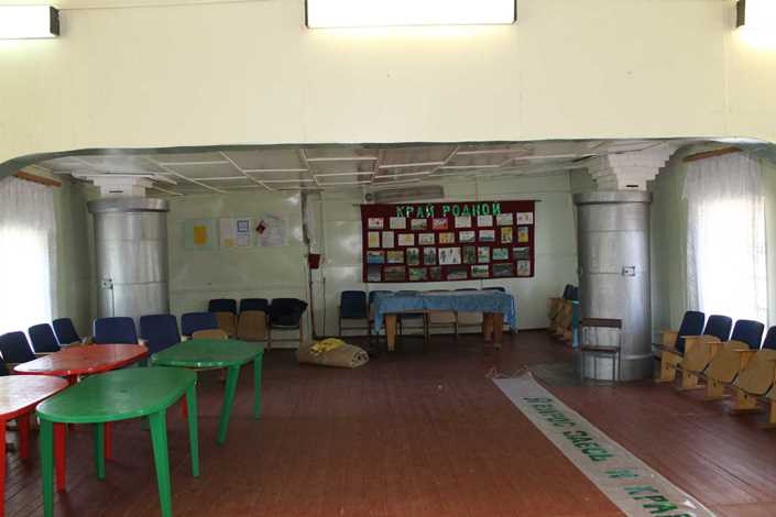 Здание каменной церкви частично используется (трапезная), частично заброшено, деревянную церковь занимает клуб.